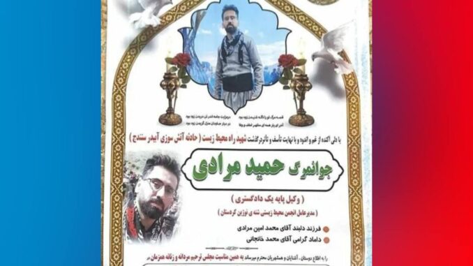 حمید مرادی روز جمعه، سوم مرداد ۱۴۰۴، پسن از چند روز تحمل سوختگی شدید ناشی از تلاش برای مهار آتشسوزی در #کوه_آبیدر، در بیمارستان کوثر #سنه (سنندج) جان خود را از دست داد. او از فعالان برجسته #محیط_زیست و چهرهای مورد احترام در میان جامعه حقوقدانان کورد بود.