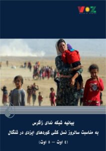 شبکه ندای زاگرس، ضمن اعلام همبستگی کامل با خانوادههای قربانیان، بازماندگان، و فعالان مدنی ایزدی، تعهد خود را برای استمرار روشنگری، مقابله با تحریف واقعیتها، و پیگیری دادخواهی برای قربانیان شنگال، تجدید مینماید.