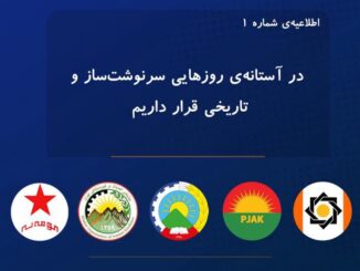 اطلاعیه شمارهٔ ۱مردم مبارز و حق‌طلب کوردستان!از روز شنبه، ۹ اسفندماه، روند تحولات در ایران به‌سوی دگرگونی‌ای عمیق و بنیادین شتاب گرفته است. جنگی که اکنون شعله‌ور شده، برآیند دهه‌ها سیاست ماجراجویانه و تنش‌آفرین رژیم، […]