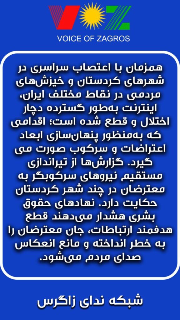 همزمان با اعتصاب گسترده در شهر های کُردستان و خیزش مردمی در نقاط مختلف ایران، رژیم جمهوری اسلامی اینترنت را به شدت مختل و قطع کرده تا گستردگی قیام مردمی و جنایات خود را مخفی کند.