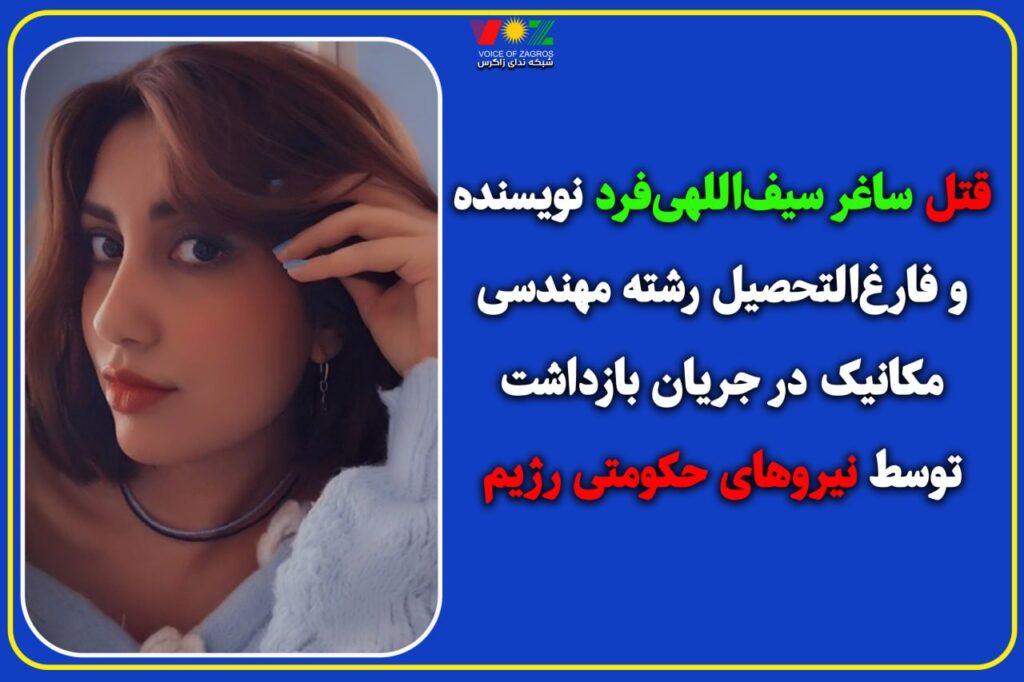 بر اساس اطلاعات منتشرشده، “ساغر سیفاللهیفرد” نویسنده و فارغالتحصیل رشته مهندسی مکانیک، در مسیر بازگشت از محل کار به منزل، توسط نیروهای حکومتی جمهوری اسلامی ایران مورد تعقیب و بازداشت قرار گرفت.