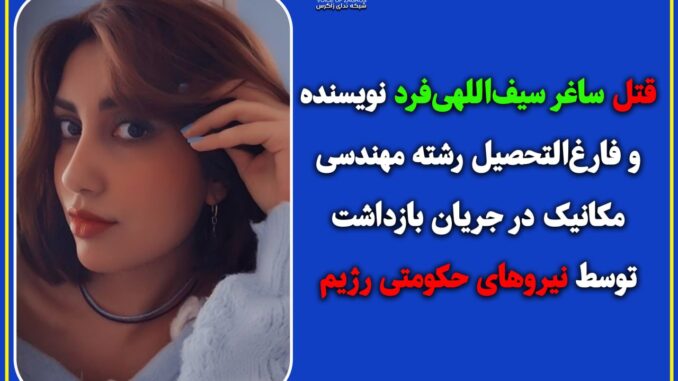 🔥 قتل ساغر سیفاللهیفرد نویسندە و فارغالتحصیل رشته مهندسی مکانیک در جریان بازداشت توسط نیروهای حکومتی رژیم