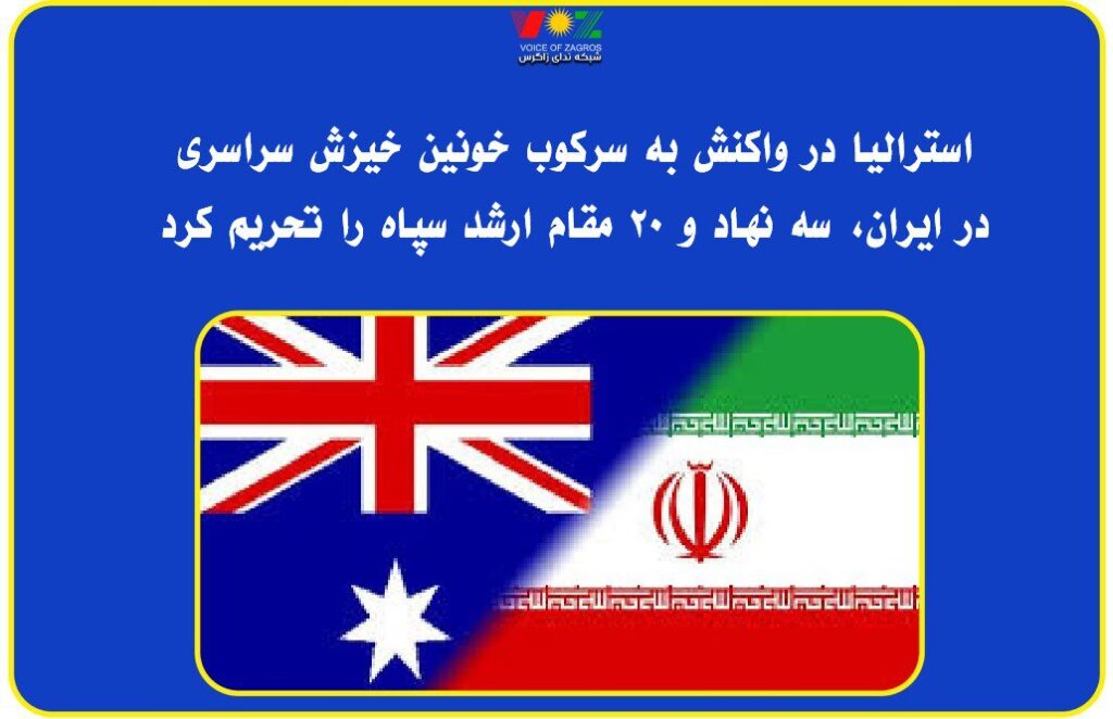 دولت استرالیا اعلام کرد در واکنش به “سرکوب بیرحمانه و گستردهٔ اعتراضات مردمی در ایران”، ۲۰ مقام رژیم جمهوری اسلامی و سه نهاد وابسته به سپاه پاسداران را تحت تحریمهای مالی هدفمند قرار داده است.
